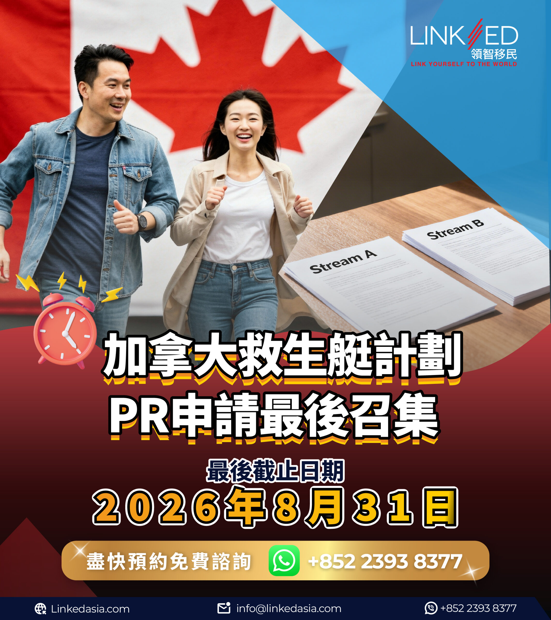 Canada’s PR Pathways for Hong Kong Residents (Stream A & Stream B), launched in 2021, have been successfully helping tens of thousands of Hong Kong residents achieve permanent residency for nearly five years. These programs will close to new applications on August 31, 2026. With only about five months remaining until the deadline, we strongly recommend taking action if you: